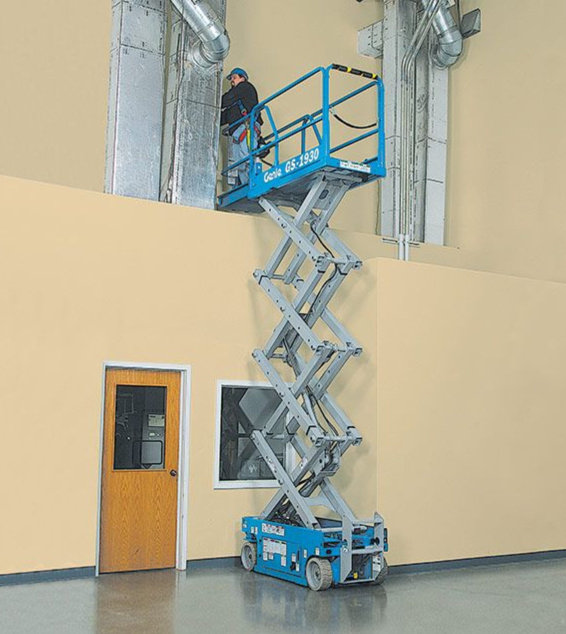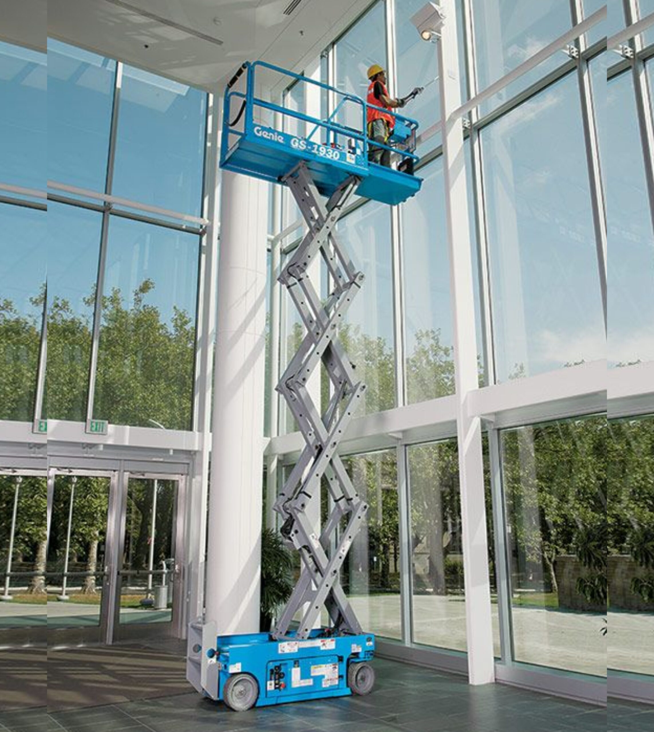 A plataforma pantográfica Genie® GS™-1930 é fácil de manobrar em espaços apertados, tem uma altura de trabalho de 25 ft, apresenta uma operação silenciosa, elétrica, e sem emissões, e é ideal para múltiplas aplicações em superfícies firmes e niveladas, ao ar livre e em ambientes fechados.