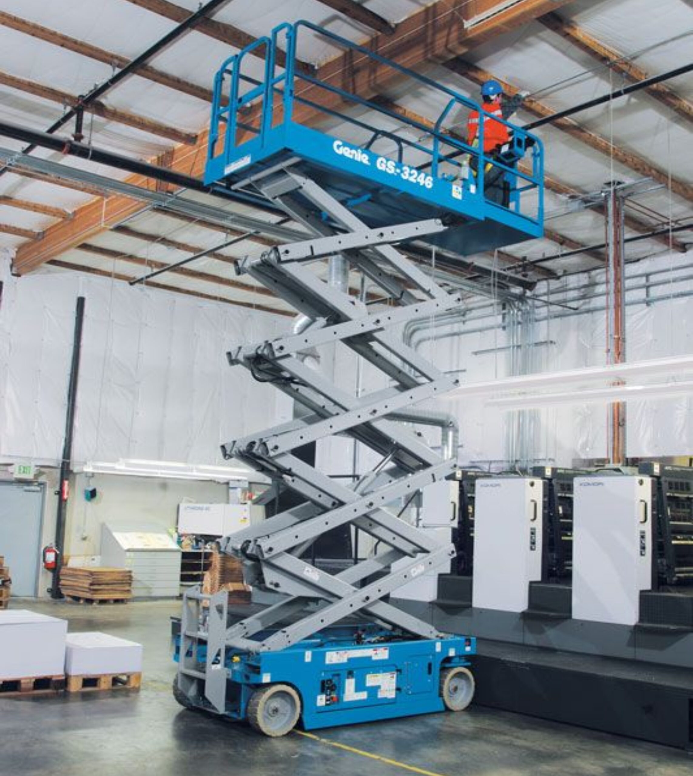 Com tração dianteira e raio zero de giro interno, a plataforma pantográfica Genie® GS™-3246 é excelente para aplicações de construção, manutenção e instalação em superfícies firmes e niveladas ao ar livre ou em ambientes fechados. Com operação elétrica silenciosa e sem emissões, é ideal para ambientes sensíveis ao som.